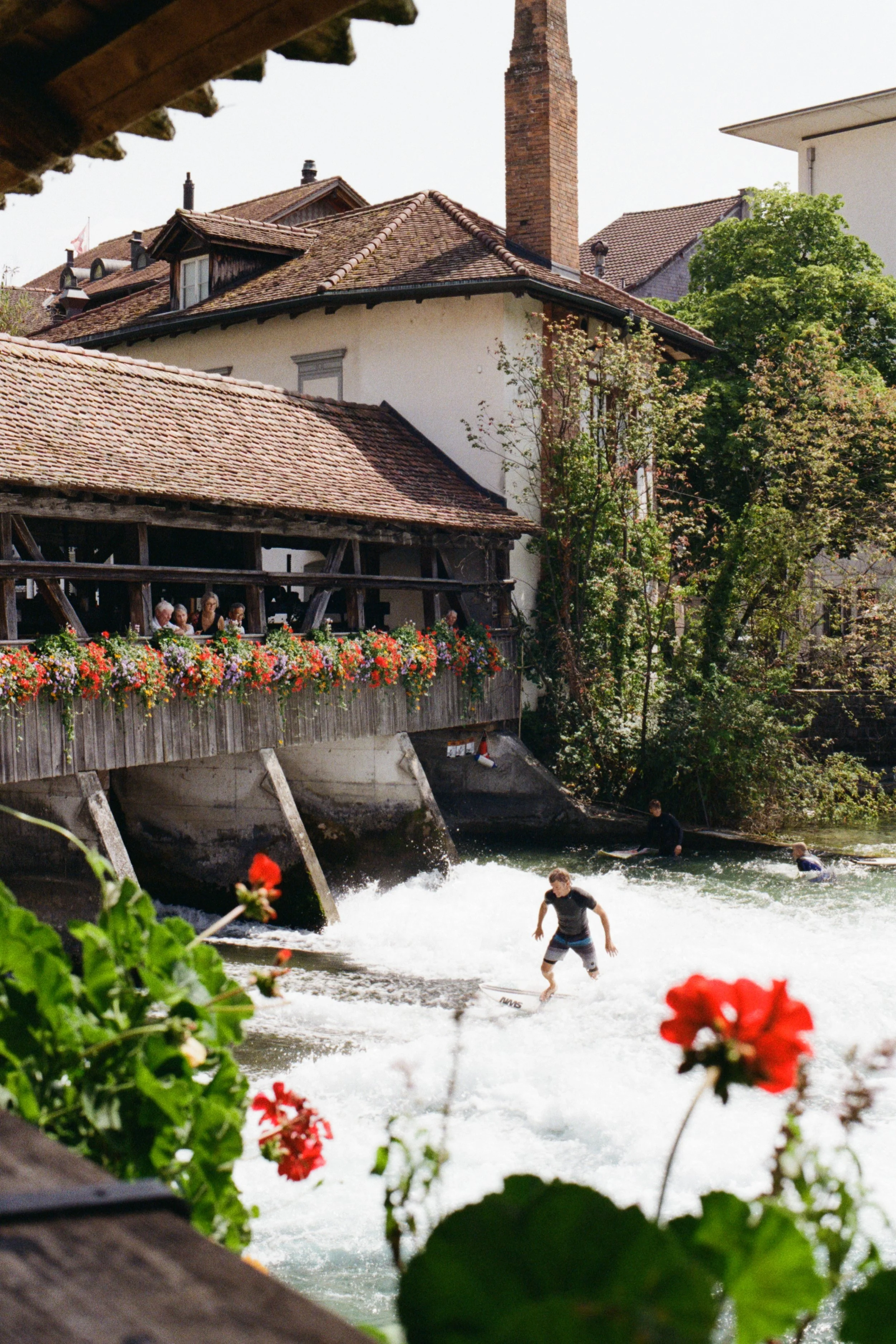 Enjoying crossing the multiple wooden bridges that zigzag across the town centre. Go and see the two river lock bridges where people surf in the rushing water of the Aare (Flusswelle and Mühleschleuse).