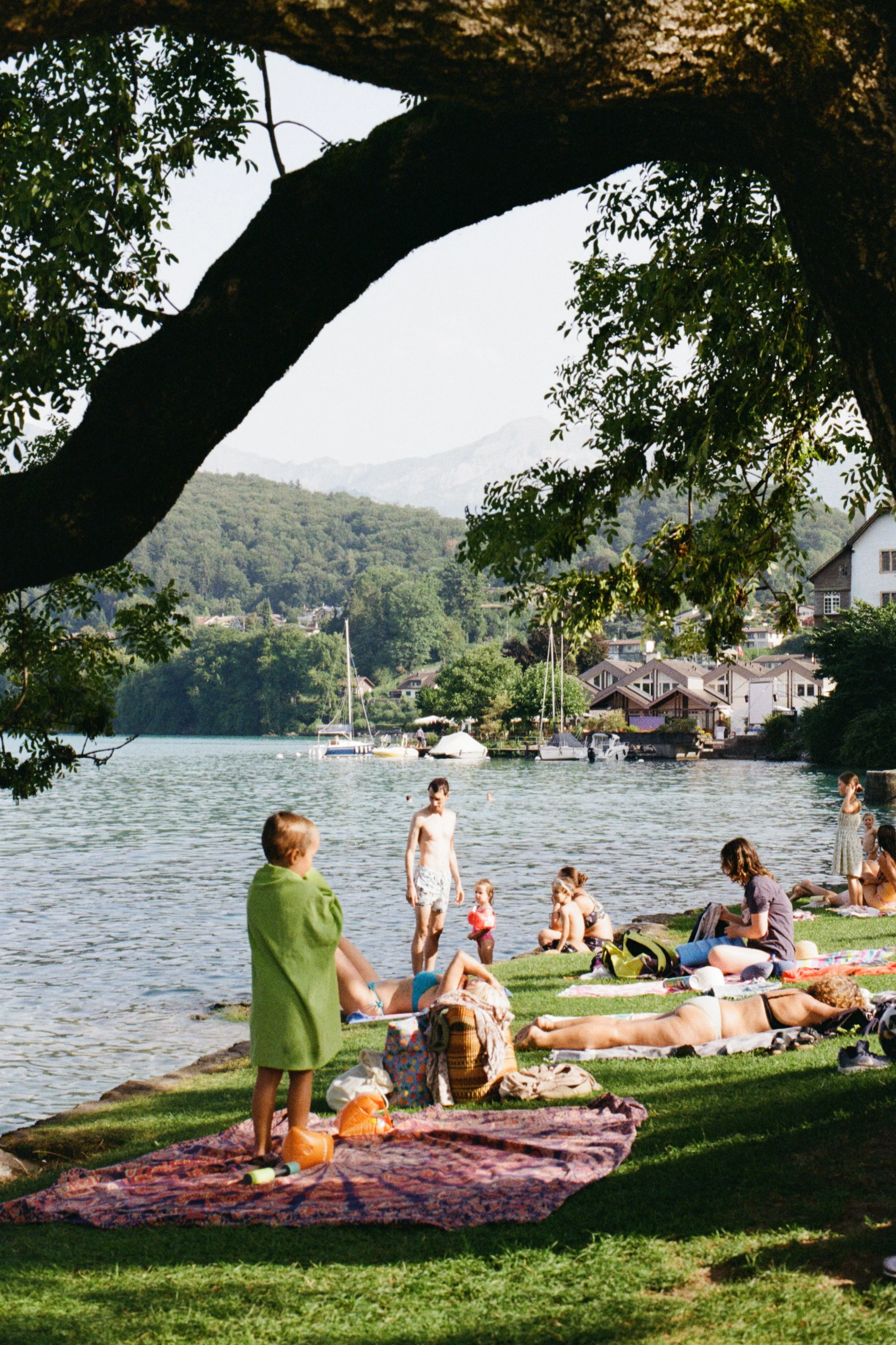 As the ferry moves between stops, you’ll notice plenty of places to swim. Some particularly picturesque spots I saw include the swimming areas near Hünibach wharf, Schloss Hünegg, and Schloss Oberhofen am Thunersee.